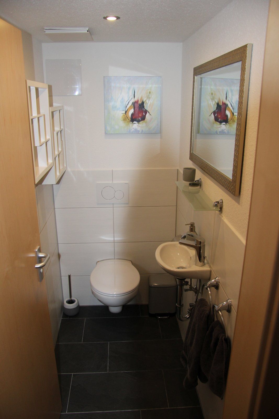 Eine separate Toilette im Wohnbereich. Handtücher und Bettwäsche vorhanden.