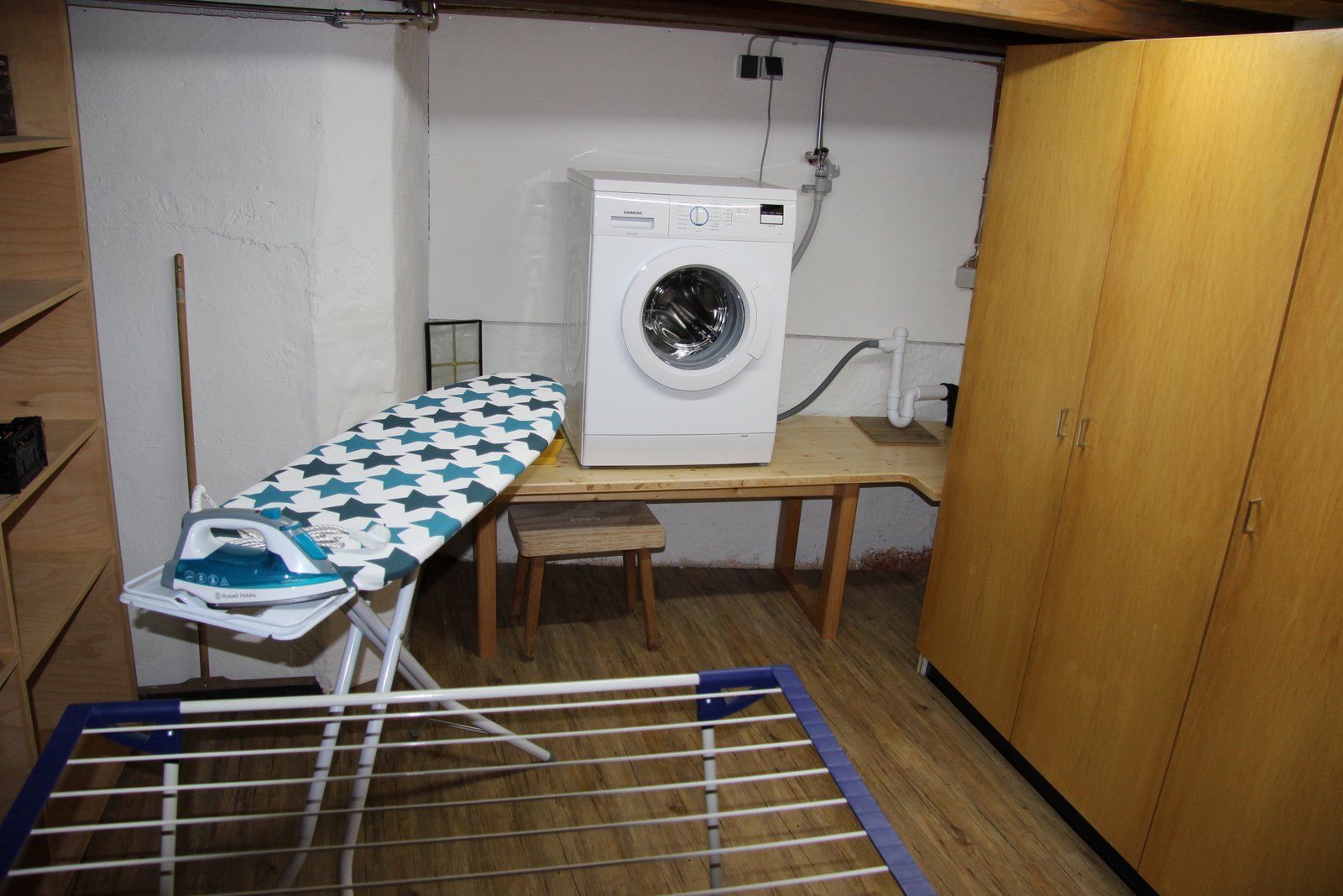 Waschmaschine und Bügel-Vorrichtung vorhanden.